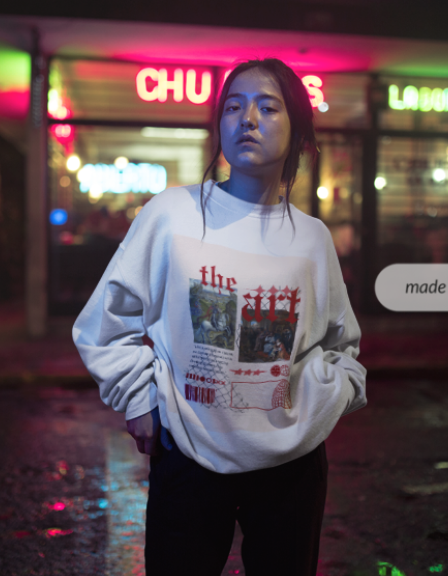 Classical art just got a streetwear upgrade. This hoodie’s collage of old-world paintings, stars, and barcodes is a walking gallery of cool.